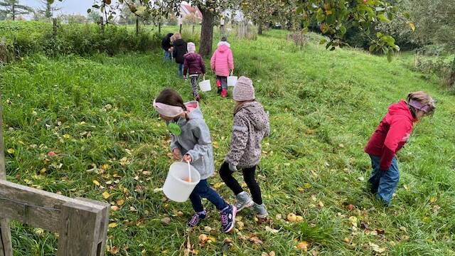 Anfang Oktober machten sich unsere Erstklässler und die Kombiklasse auf zu einem Apfeltag mit dem Bildungszentrum Roggenburg. Nachdem den Kindern der Aufbau der Streuobstwiese praxisnah veranschaulicht wurde, sammelten die Schülerinnen und Schüler fleißig Äpfel, die sie anschließend unter Anleitung selbstständig verarbeitet haben: Ein Teil der Äpfel wurde per Hand geschnitten, mit einem Mahlwerk zerkleinert und mit vereintem Kraftaufwand zu Apfelsaft gepresst. Aus den restlichen Äpfeln durfte jeder seinen eigenen Apfelplunder backen.